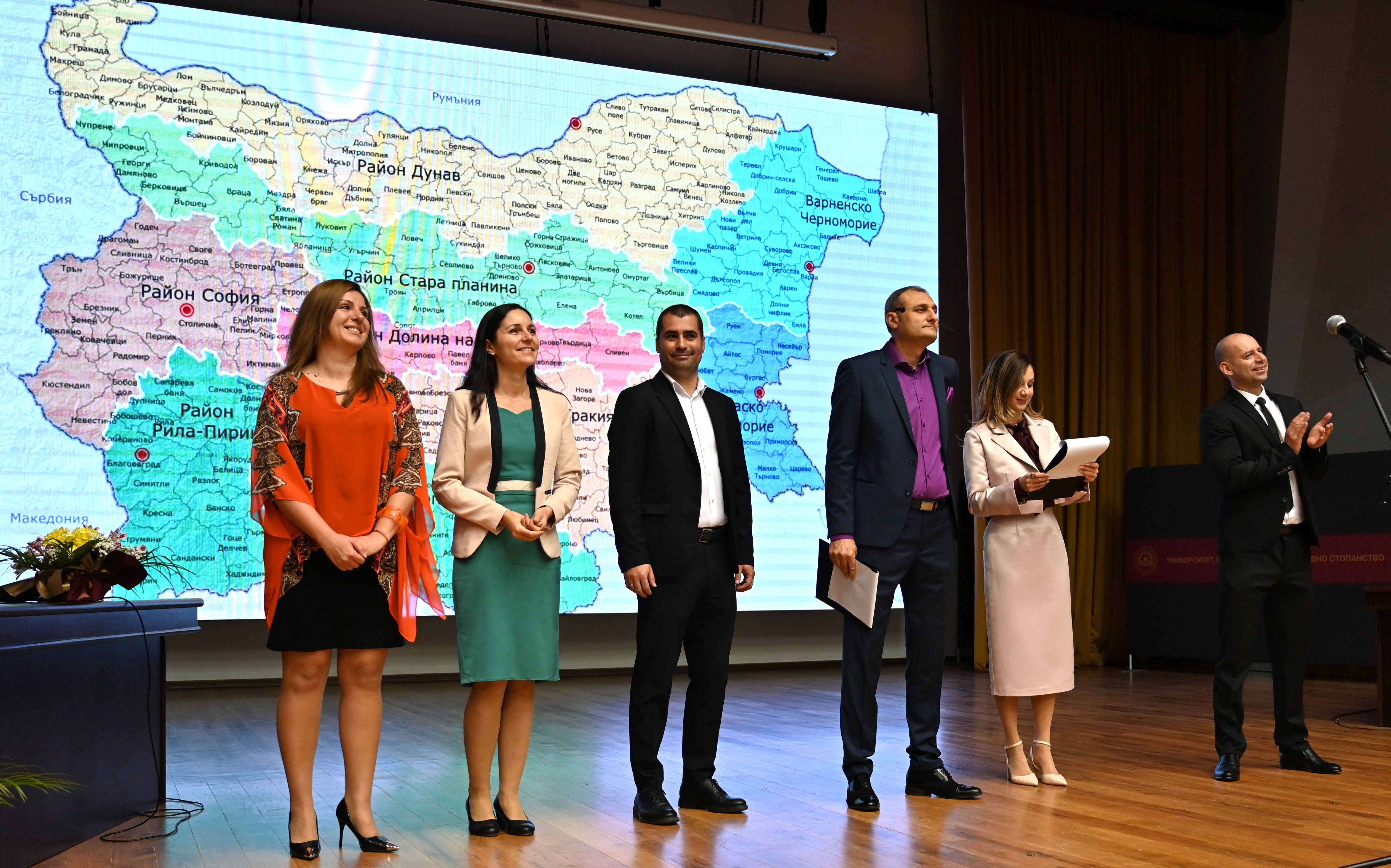 Проф. д-р Еленита Великова, директор на Глобалния център за устойчивост на туризма и управление на кризи и гл. секретар по науката, проф. д-р Мариана Янева, доц. д-р Ася Панджерова, ас. д-р Тихомир Драганов, гл. ас. д-р Ралица Георгиева